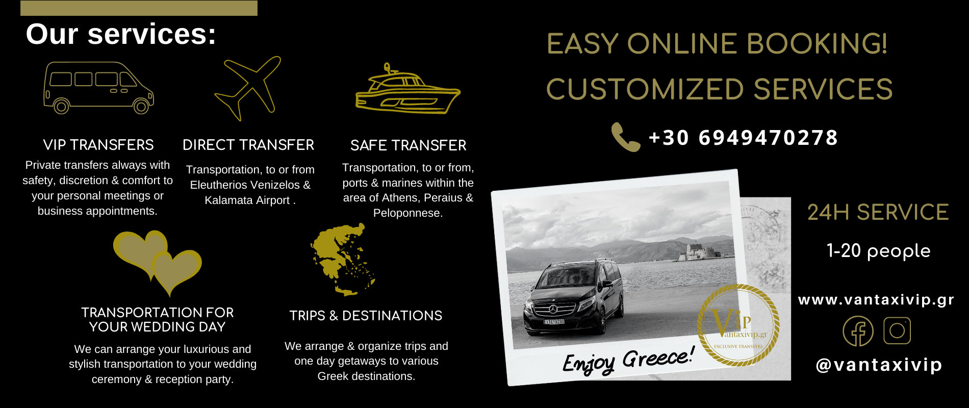 Offers you safe, reliable and economical transfers with mini-van, taxi from Athens airport to the center of Athens